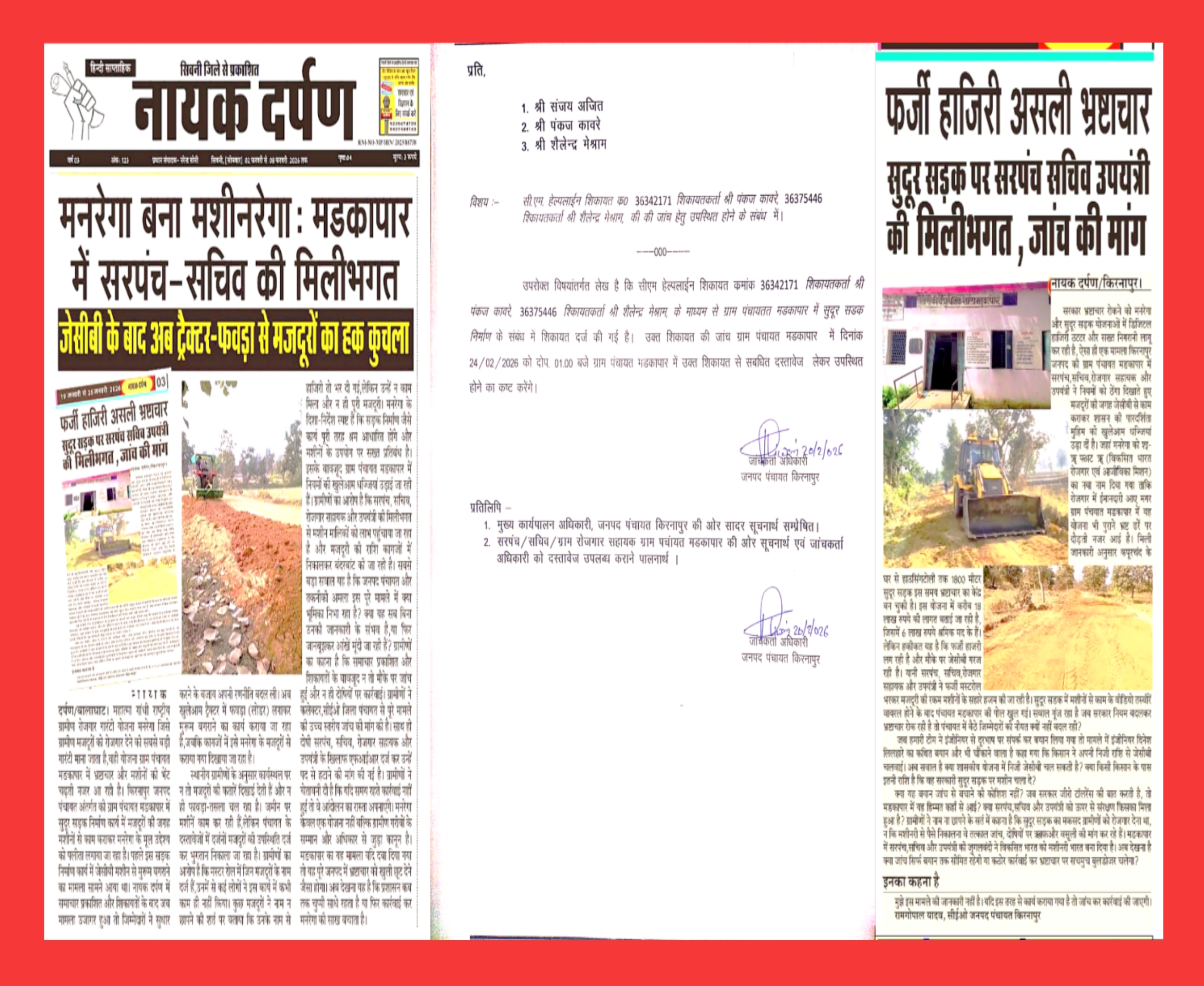 नायक दर्पण/बालाघाट। किरनापुर जनपद अंतर्गत की ग्राम पंचायत मड़कापार में जेसीबी मशीन से कराए गए निर्माण कार्...
