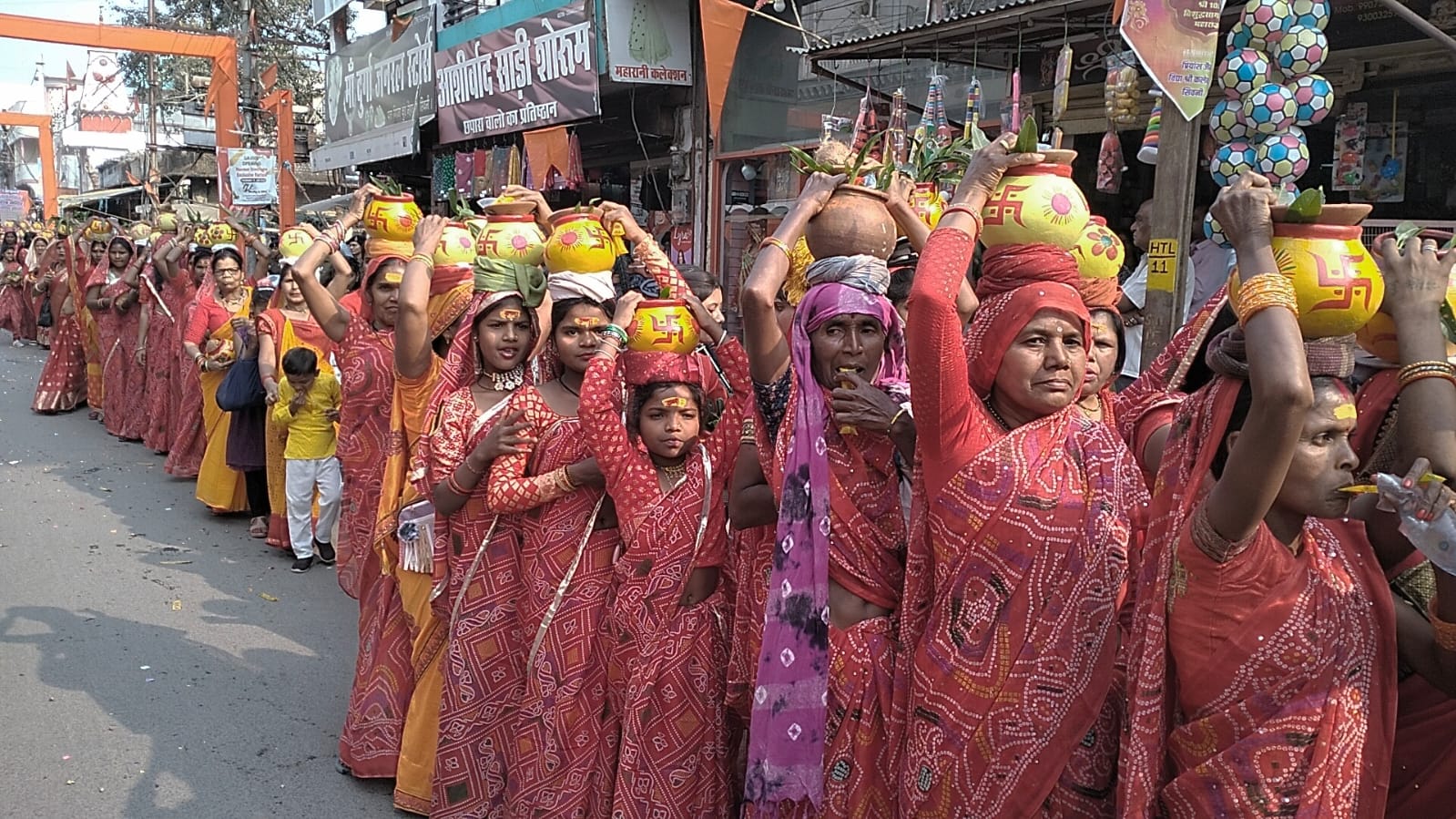 शोभायात्रा में एक हजार से अधिक महिलाओं ने सिर पर कलश धारण किए, जिससे वातावरण भक्तिमय हो उठा। धर्मध्वजाओं, घंटा-घड़ियाल, घोड़े, व्यायामशाला दल, शिव–पार्वती एवं राधा–कृष्ण की आकर्षक झांकियों से सुसज्जित रथों ने श्रद्धालुओं का मन मोह लिया।
