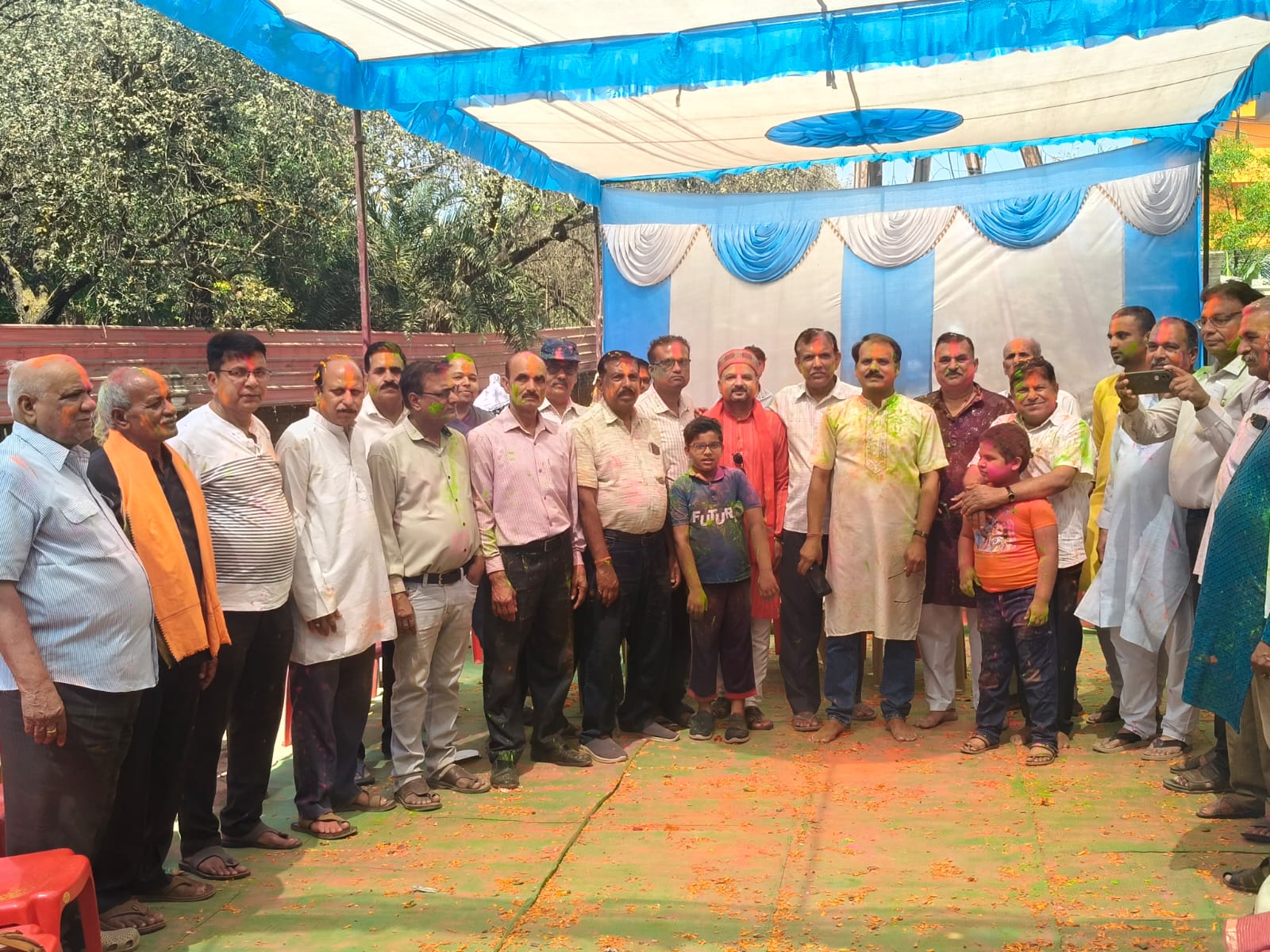 इसके बाद उपस्थित सभी लोगों ने एक-दूसरे को गुलाल तिलक लगाकर फूलों की होली खेली और मधुर होली गीत-संगीत के साथ हर्षोल्लास से होली मिलन समारोह मनाया। अंत में सभी उपस्थित जनसमुदाय ने प्रसादी ग्रहण की।