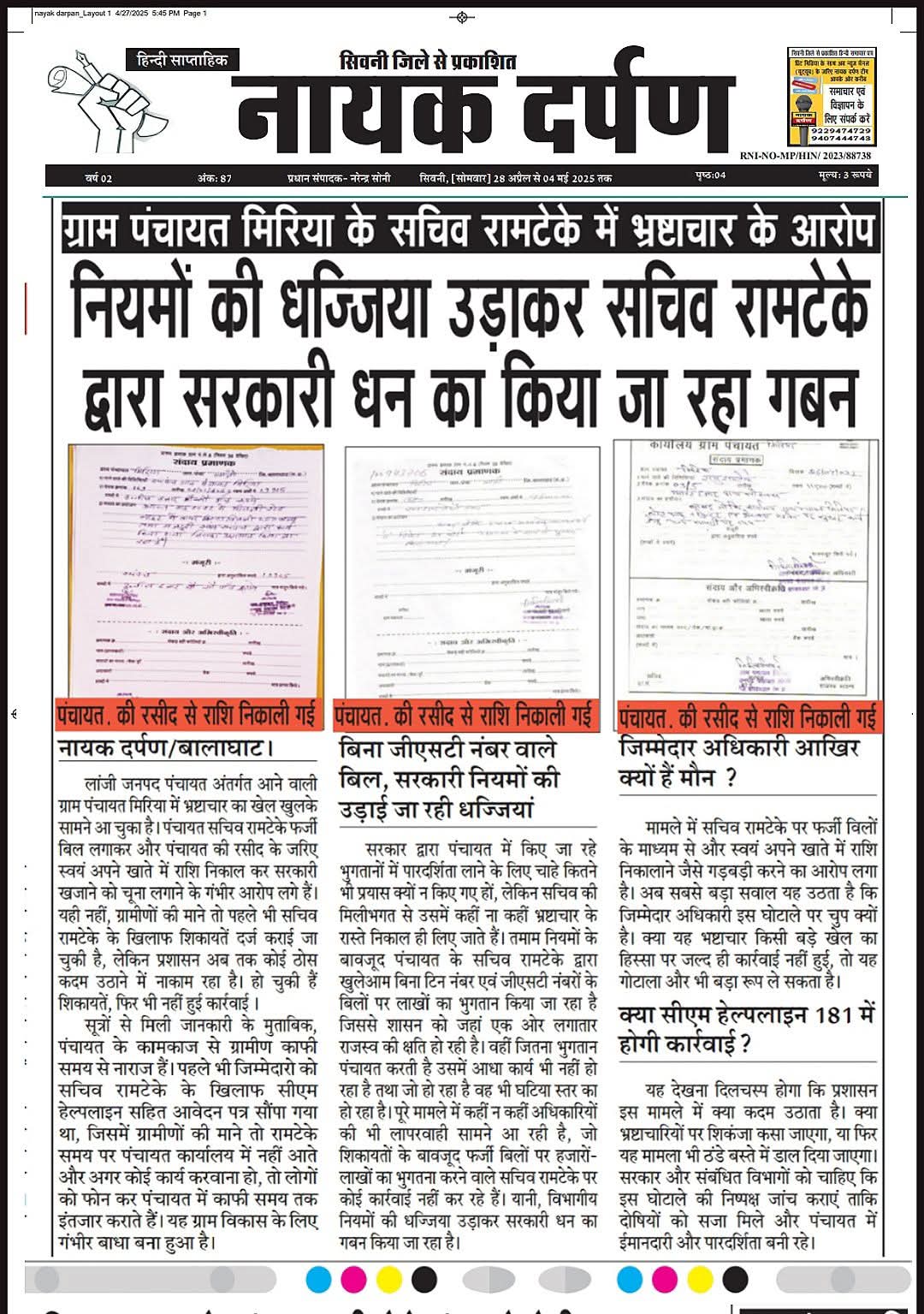 बालाघाट/लांजी नायक दर्पण जनपद पंचायत लांजी के ग्राम पंचायत मिरिया में सरपंच सचिव द्वारा पंचायती राज नियमो...