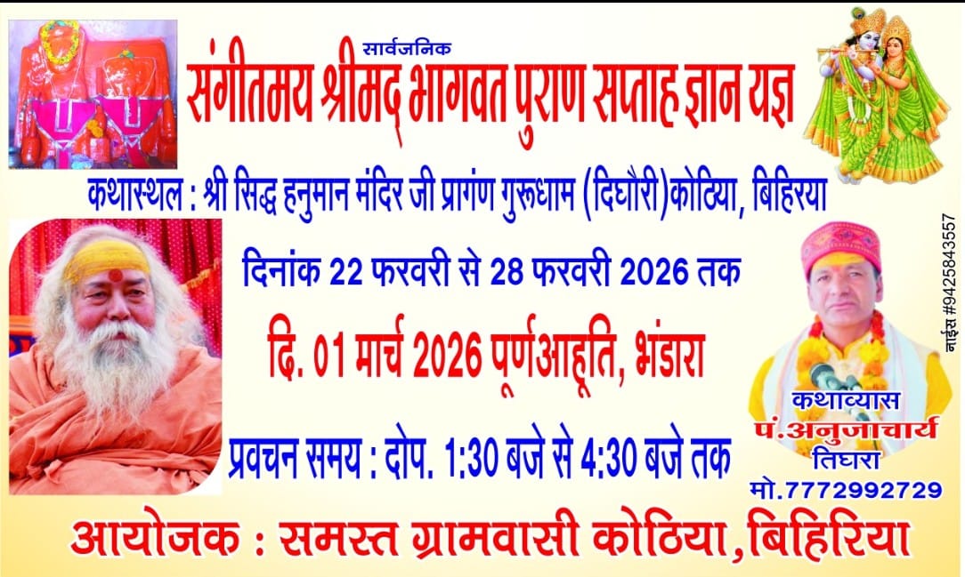 सिवनी नायक दर्पण ग्राम कोठिया गुरुधाम स्थित सिद्ध श्री महावीर हनुमान जी मंदिर प्रांगण में 22 फरवरी 2026 ...