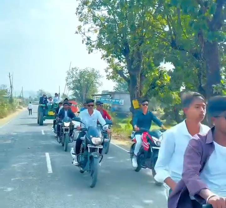 मामला स्कूल में कक्षा 12वीं के विद्यार्थियों की विदाई से जुड़ा है। विदाई कार्यक्रम को यादगार बनाने के नाम पर शिक्षक और विद्यार्थियों ने मिलकर ऐसा आयोजन कर डाला जो कानून और सुरक्षा दोनों के लिए खतरा बन गया। स्कूल परिसर से शुरू हुई यह रैली सीधे मुख्य सड़क तक पहुंची, जहां बच्चों ने बिना हेलमेट बाइक दौड़ाई और ट्रैक्टर पर सवार होकर नियमों की धज्जियां उड़ाईं। हैरानी की बात यह रही कि यहL सब pस्कूल समय और स्कूल परिसर से जुड़े आयोजन के तहत हुआ, फिर भी किसी जिम्मेदार ने रोकने की जरूरत नहीं समझी।