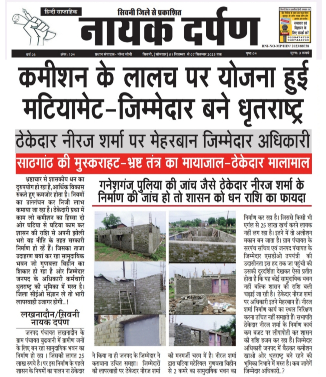 नीरज शर्मा के आगे क्यों झुक गए जिम्मेदार अधिकारी.. ? ठेकेदार मजबूत या सिस्टम कमजोर...?जांच से डर या कमिशन का असर..?