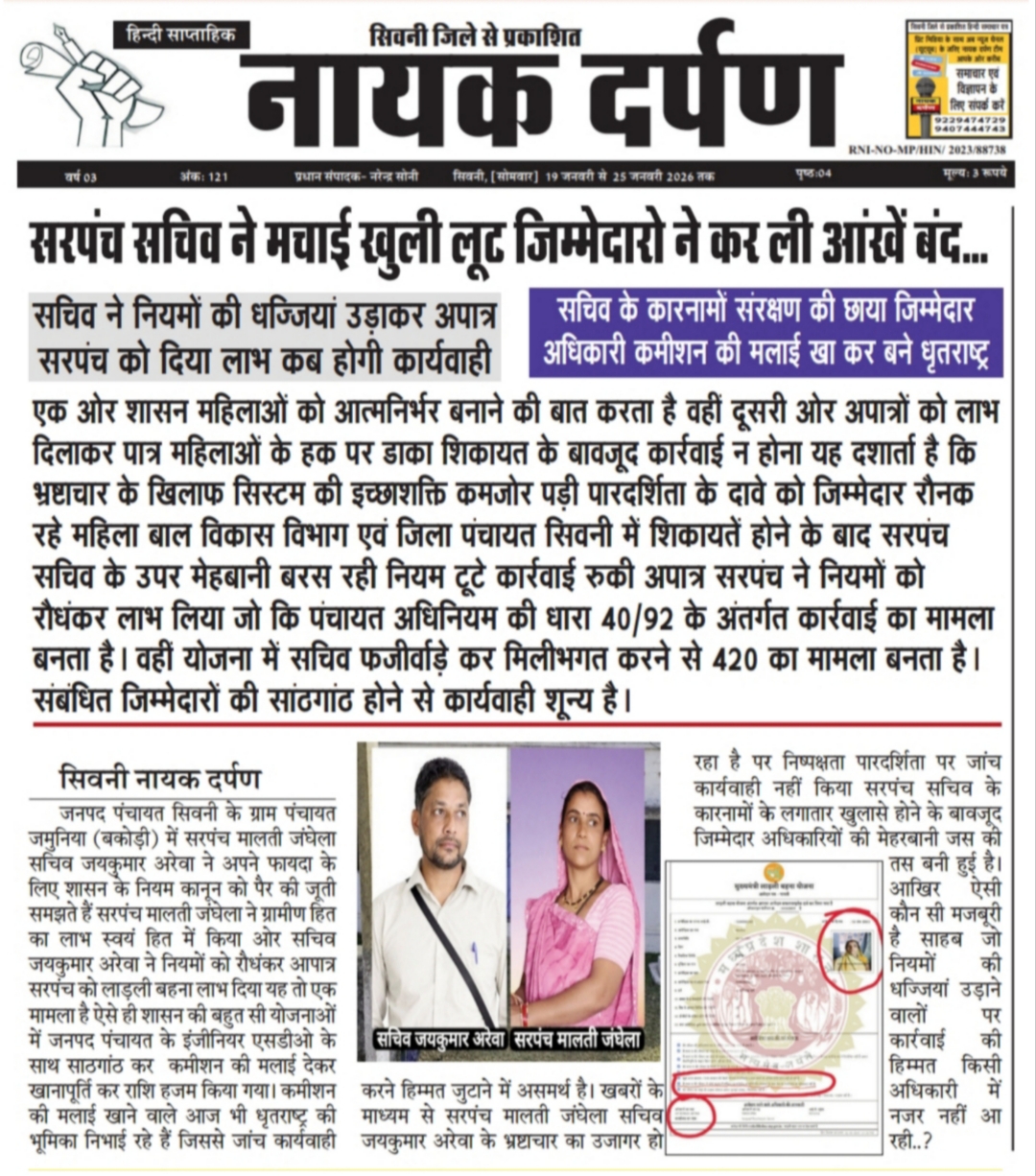 शिकायतें पहुंचीं,खबरें छपी फिर भी कार्रवाई का पत्ता नहीं हिला... कमीशन के “गांधी छाप कागज” के आगे क्या नियम बौने पड़ गए…?जिम्मेदार अधिकारियों के हाथ बंधे हैं या आंखों पर पट्टी…?शासन की राशि पर डाका यह कैसा पंचायत राज…?
