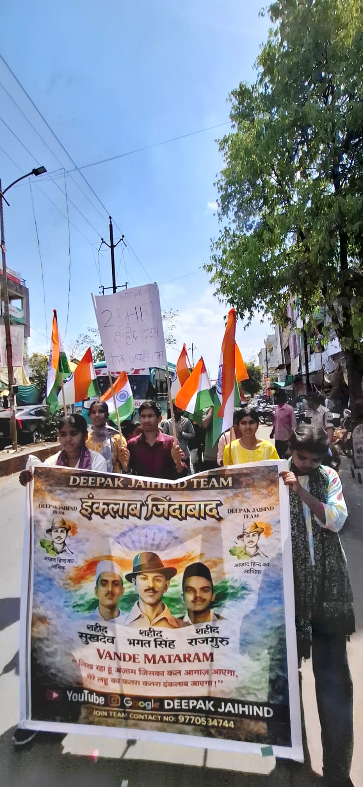 कार्यक्रम का नेतृत्व टीम लीडर दीपक डेहरिया ने किया। इस दौरान युवाओं ने शहीदों के चित्रों पर पुष्प अर्पित कर उन्हें नमन किया और दो मिनट का मौन रखकर उनके बलिदान को याद किया। “भारत माता की जय”, “वंदे मातरम्” और “इंकलाब जिंदाबाद” के नारों से पूरा वातावरण देशभक्ति से गूंज उठा।