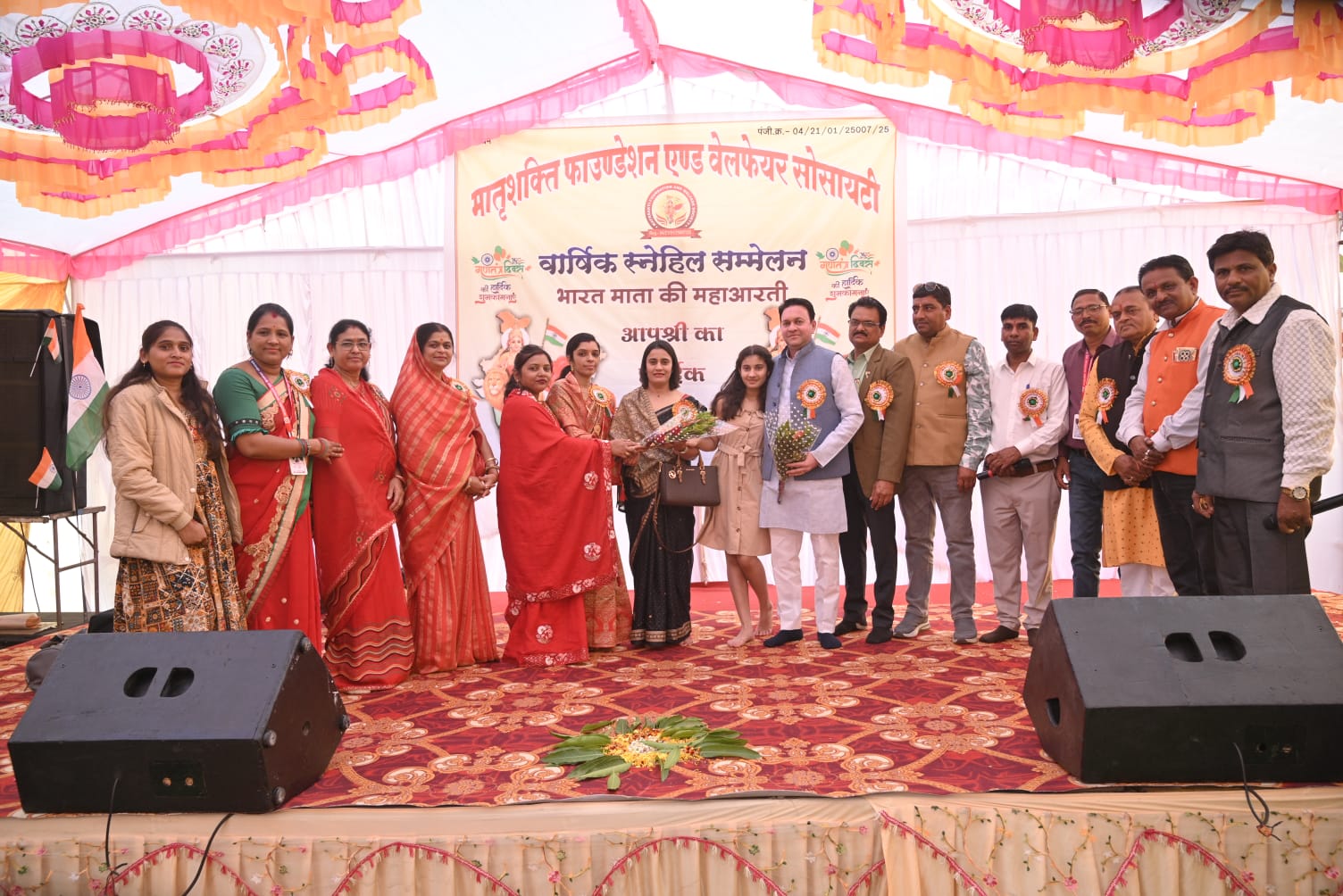 मातृशक्ति फाउंडेशन समिति का वार्षिक स्नेही सम्मेलन हुआ संपन्न संस्था द्वारा आयोजित की गई भारत माता की महाआरती।